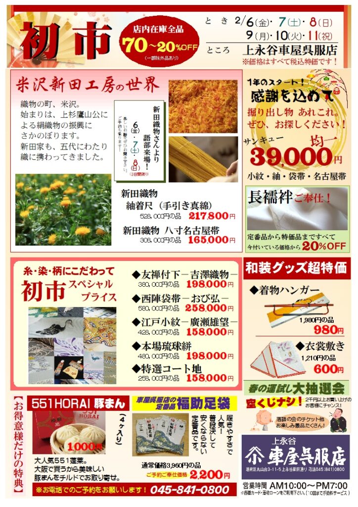 新春恒例「初市」開催のお知らせ | 上永谷 車屋呉服店